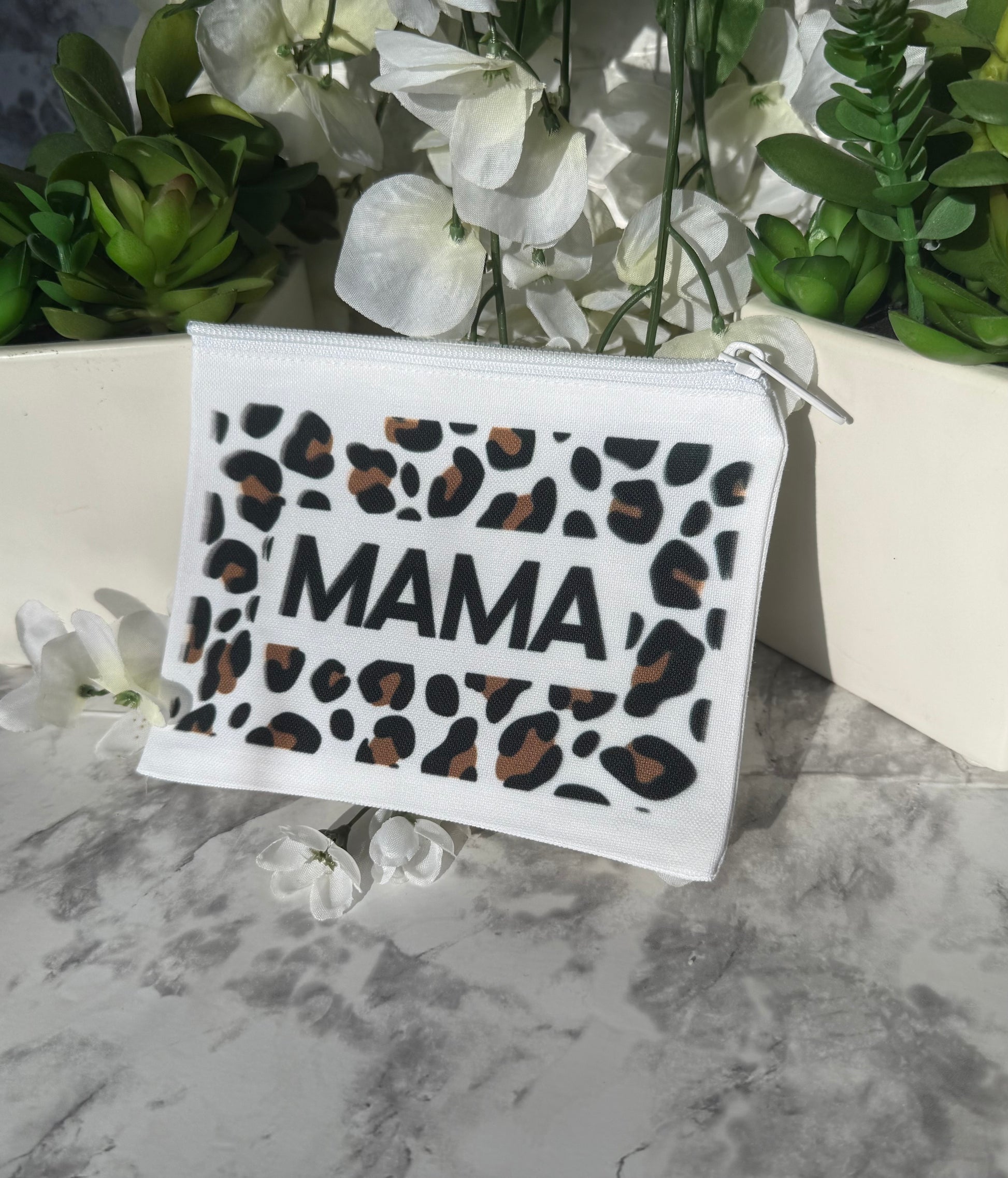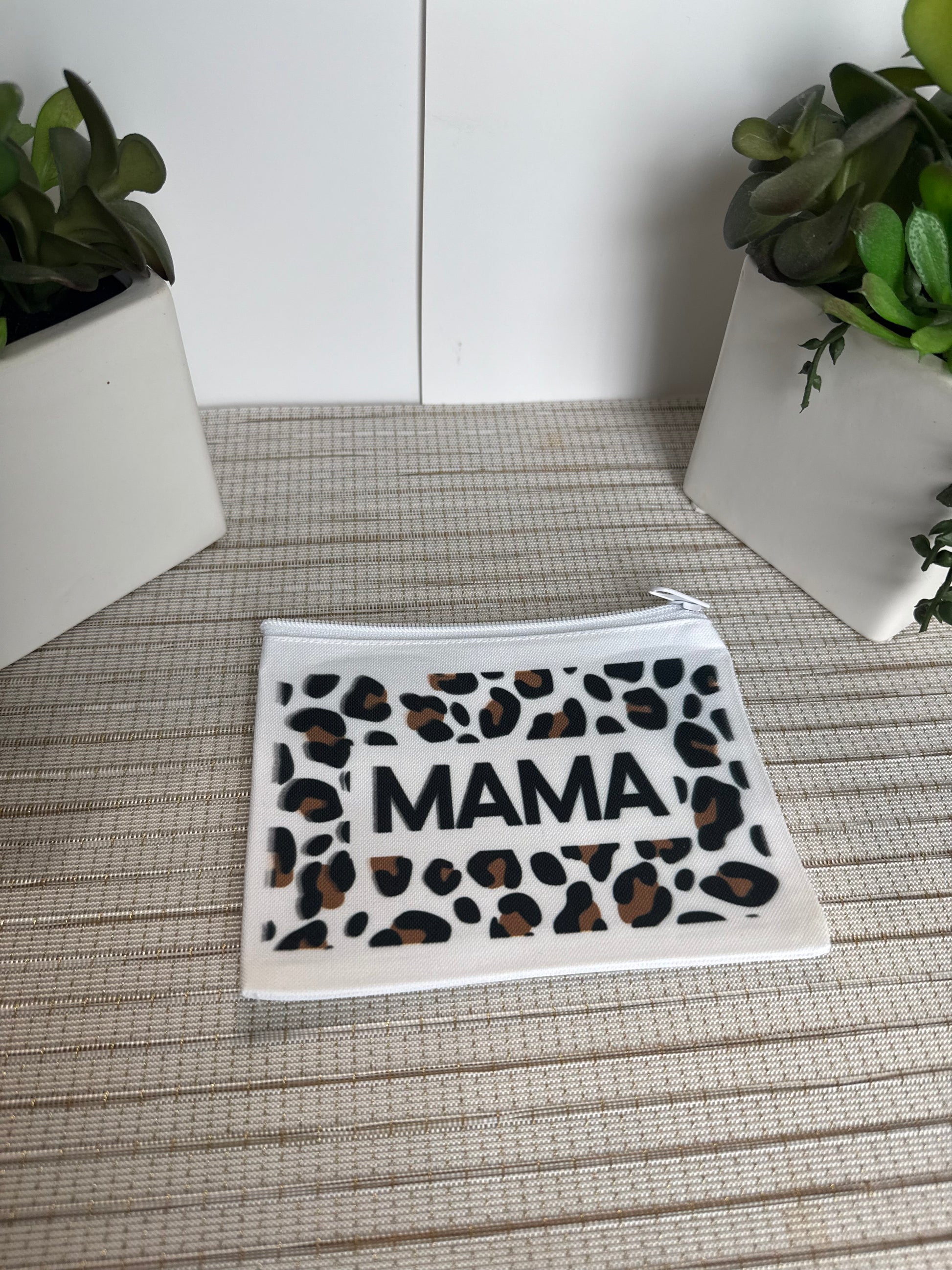 Show off your mama pride in style! This trendy Leopard Print “MAMA” Makeup Bag is the perfect everyday pouch for busy moms who want to keep their essentials organized while looking cute. With its bold leopard design and clean black lettering, this bag is both fashionable and functional.